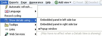 Tools > Show details usingIn addition to using the Details View, there are various options for showing record-level details.
